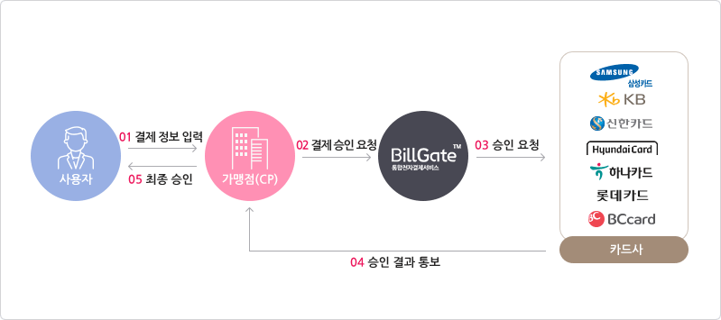 - 01 보편화된 결제 서비스 신용카드 가입자 누구나 이용, 높은 이용률 유지하며 고액결제 상품에 적합한 결제 서비스