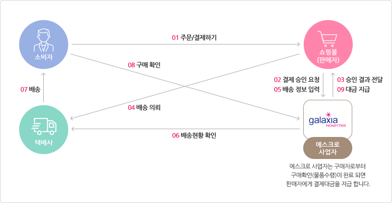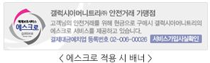 에스크로 서비스는 전자상거래상에서 판매자와 구매자가 거래합의 후 상품배송 및 결제과정 중 발생할 수 있는 거래사고를 예방하기 위하여 제3자(에스크로 사업자)가 거래대금의 입출금을 공정하게 관리함으로써 매매를 보호하고, 판매자와 구매자 간의 거래 안전을 도모하는 서비스 입니다. * 2006. 4. 1 전자상거래 소비자보호법에 따른 의무 시행